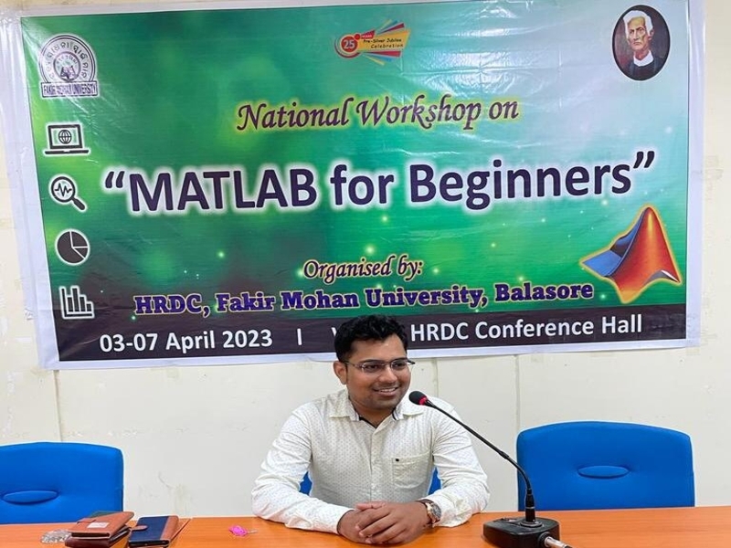 - Attended as Resource person in National Workshop on “MATLAB for Beginners” at HRDC, Fakir Mohan University, Balasore, Odisha from 3rd-7th April 2023.